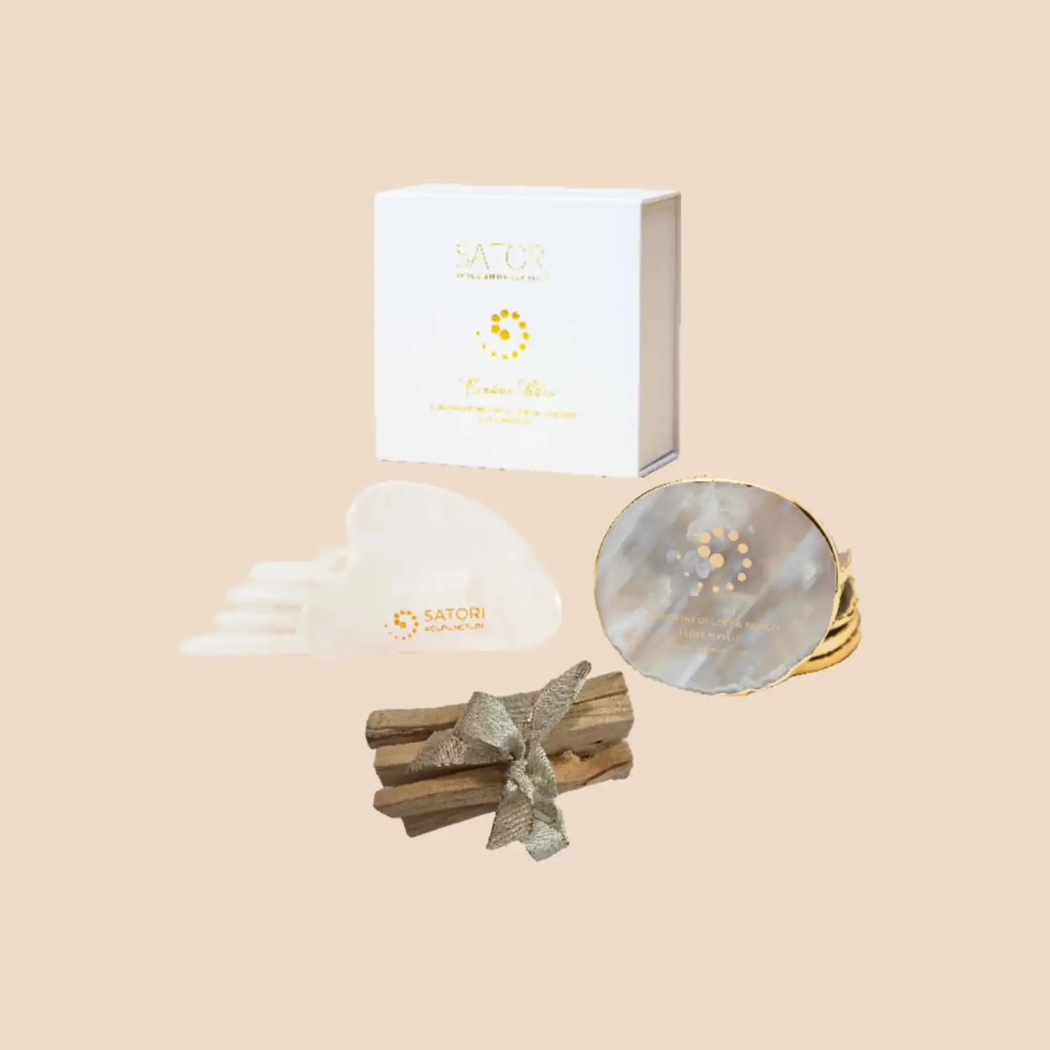 The Satori Gua Sha, carved from natural milky quartz, glides smoothly across the skin, boosting microcirculation and lymphatic drainage, reducing puffiness and restoring a clear radiance. The cool, polished crystal calms redness, while its sculpted edges trace the contours of the face and neck. Perfect for a daily ritual of toning, relaxation and balanced energy, natural beauty right in your hands.